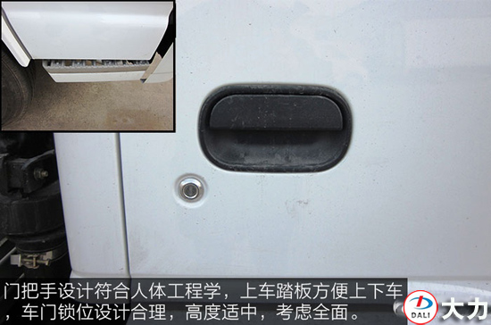 門(mén)把手設(shè)計(jì)符合人體工程學(xué),上車踏板方便上下車,車門(mén)鎖位設(shè)計(jì)合理,高度適中,考慮全面。