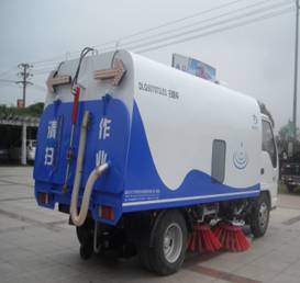 DLQ5070TSLE3 型掃路車采用慶鈴NKR77LLNACJAY 型二類汽車底盤改裝,加裝動力系統(tǒng)、風(fēng)機(jī)傳動系統(tǒng)、灑水系統(tǒng)、液壓系統(tǒng)、電氣系統(tǒng)、清掃作業(yè)裝置、副車架、垃圾箱等改裝而成,排放達(dá)到歐Ⅲ標(biāo)準(zhǔn)。其主要配套件:主、副發(fā)動機(jī)均為基于五十鈴技術(shù)的柴油發(fā)動機(jī)、寧波中意擺線馬達(dá)、中法合資的電控元件等;垃圾箱的傾翻、垃圾箱后門的開和關(guān)、掃盤的旋轉(zhuǎn)、吸嘴的升降均采用液壓傳動,電、液集中控制;主要液壓元件采用優(yōu)質(zhì)進(jìn)口件,整機(jī)性能良好、可靠。該車采用以吸為主、吸掃結(jié)合、濕式除塵的工作原理對路面進(jìn)行清掃作業(yè),具有清掃效率高,二次污染小,維修方便快捷等特點(diǎn),是城市道路、高速公路、機(jī)場、碼頭等地面理想的清掃、保潔作業(yè)設(shè)備,具備地面清掃、深坑清污等功能,是一款一機(jī)多用的設(shè)備。
