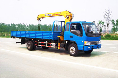 此隨車吊可選用徐工3.2噸直臂或折臂式吊機,選用徐工3.2噸直臂式吊機時,舉升高度為;6.8米,工作半徑為:5.58米。