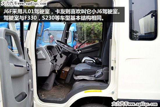 J6F采用JL01駕駛室,卡友則喜歡叫它小J6駕駛室。駕駛室與F330,S230等車(chē)型基本結(jié)構(gòu)相同。實(shí)拍車(chē)型的駕駛室寬度為1895mm,用戶(hù)可根據(jù)自己需要選裝有天窗的駕駛室。